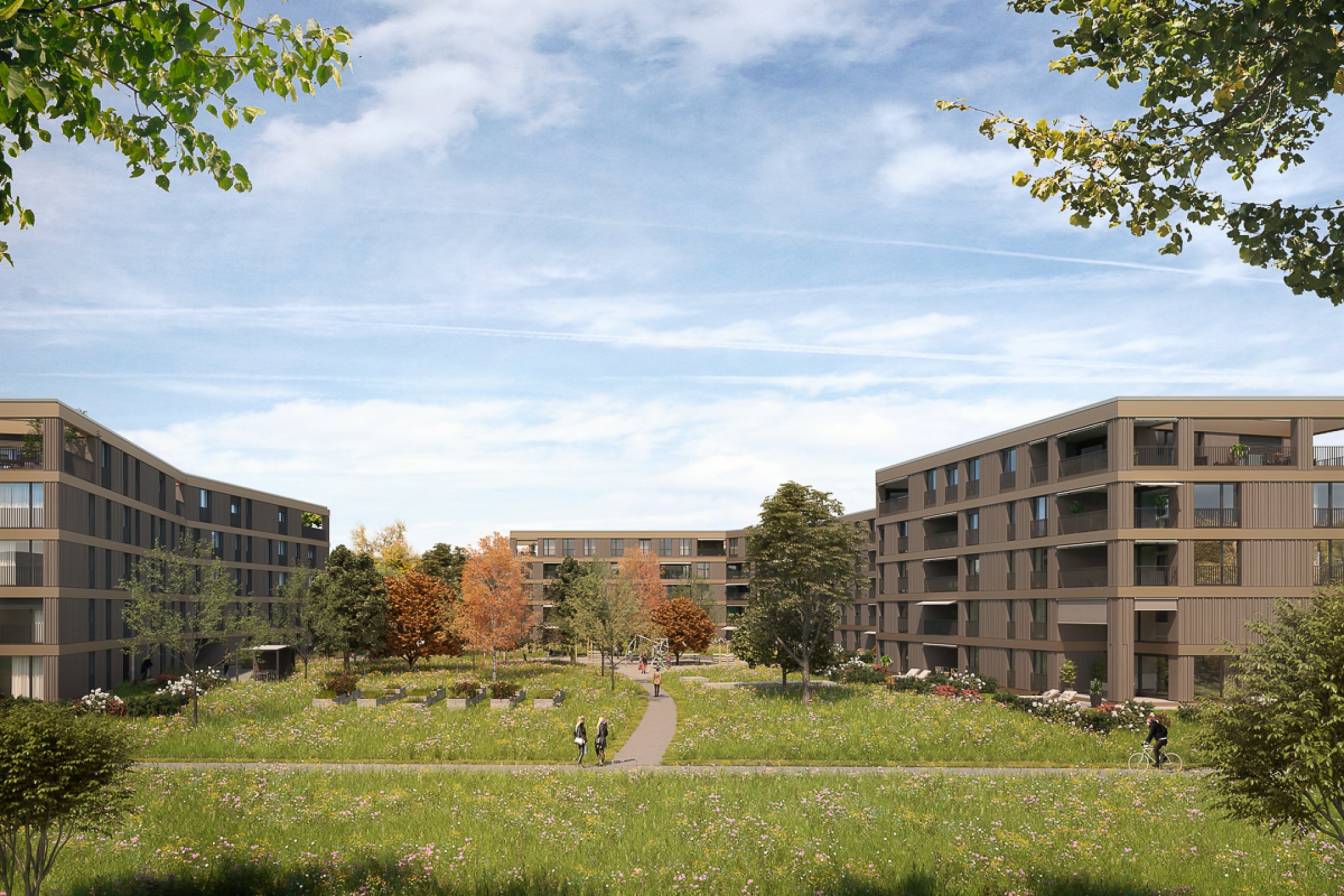Die erste Etappe mit zwei Mehrfamilienhäusern und einem Pavillon wurde im Herbst 2023 erfolgreich an die neuen Eigentümer und MIeter übergeben. Direkt im Anschluss begann der Bau der zweiten Etappe. DIe in Haus C entstehenden 33 Eigentumswohnungen und 3 Ateliers, welche ab August 2025 an die Käufer übergeben werden, sind alle verkauft.